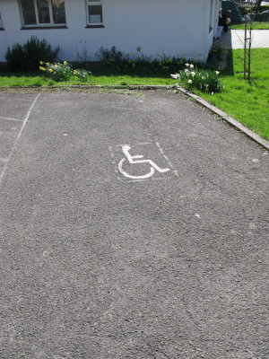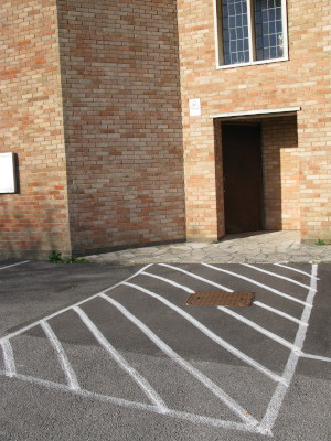 - 1 space in the entrance to the main car park