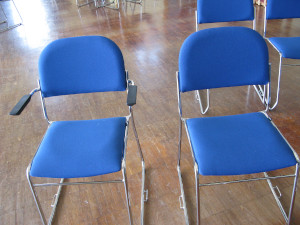 The church offers chairs with and without arms