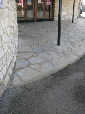 The church has ramp access at the front and the back of the building