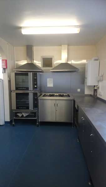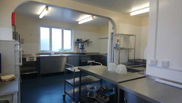 The kitchen has a cooker, a professional dishwasher, a fridge and a freezer. There are good food preparation areas, with crockery and cutlery for 100.